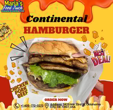 Sabores auténticos de Venezuela y Colombia en cada bocado, preparados con cariño en Maria’s Food Truck.