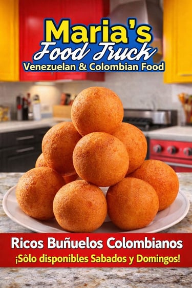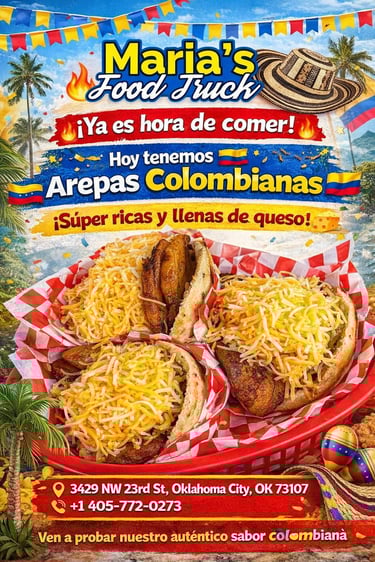 En Maria’s Food Truck celebramos la riqueza de la comida venezolana y colombiana con cada bocado lleno de tradición y cariño.